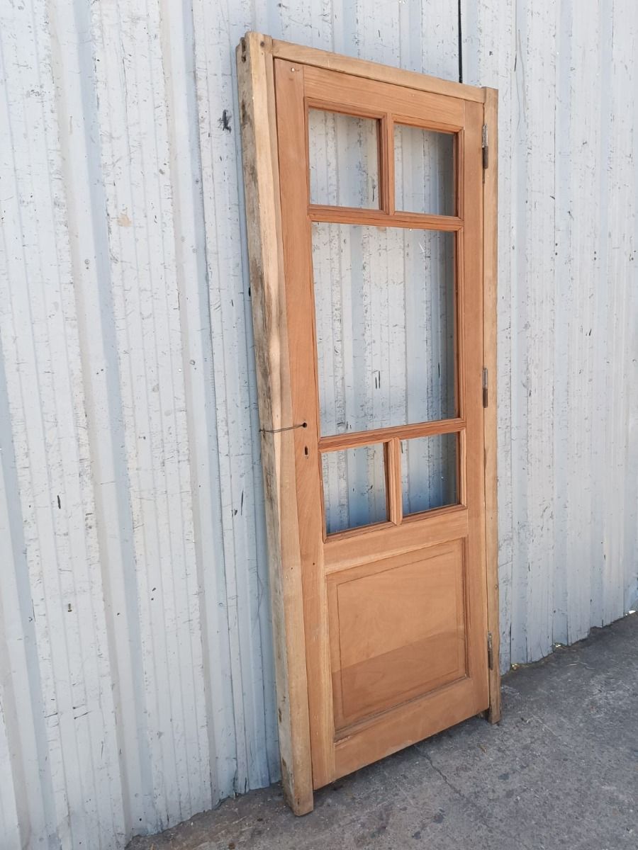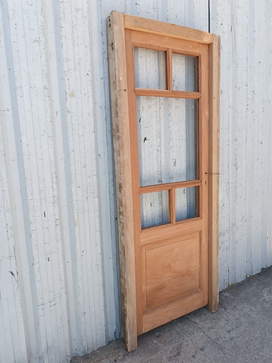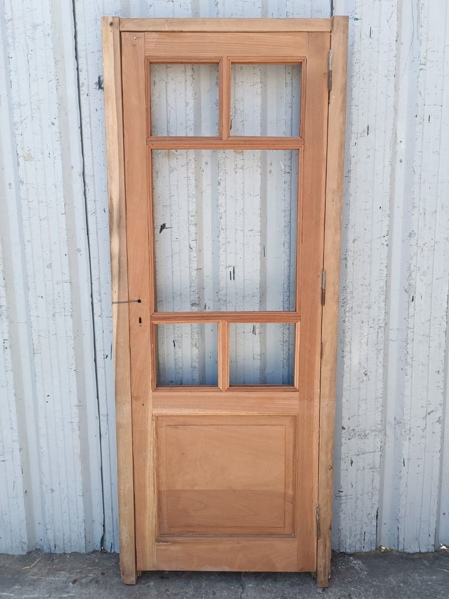 Dos antiguas puertas griegas de madera cedro al natural. Son a una hoja de abrir hacia la izquierda, con tablero doble replanado inferior y marco de madera dura. Las aberturas no incluyen los vidrios, la cerradura ni el picaporte. Hoja de 72x200cm. EL PRECIO ES POR UNIDAD.