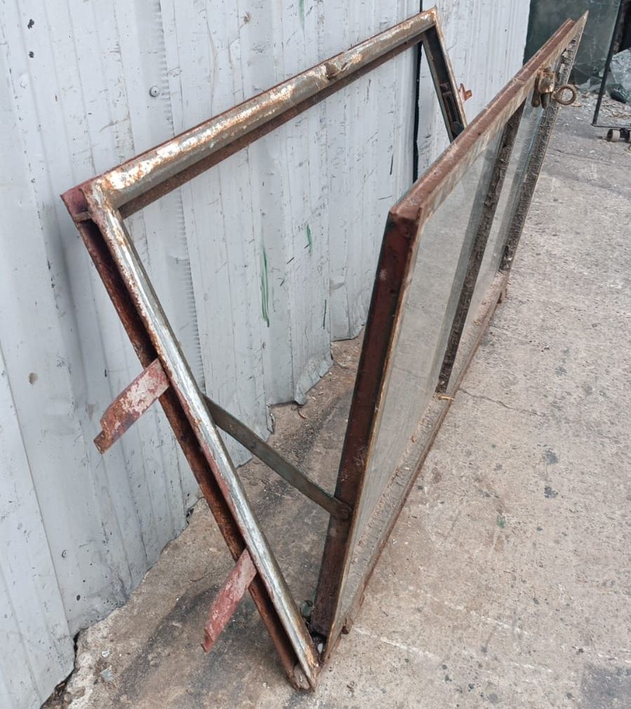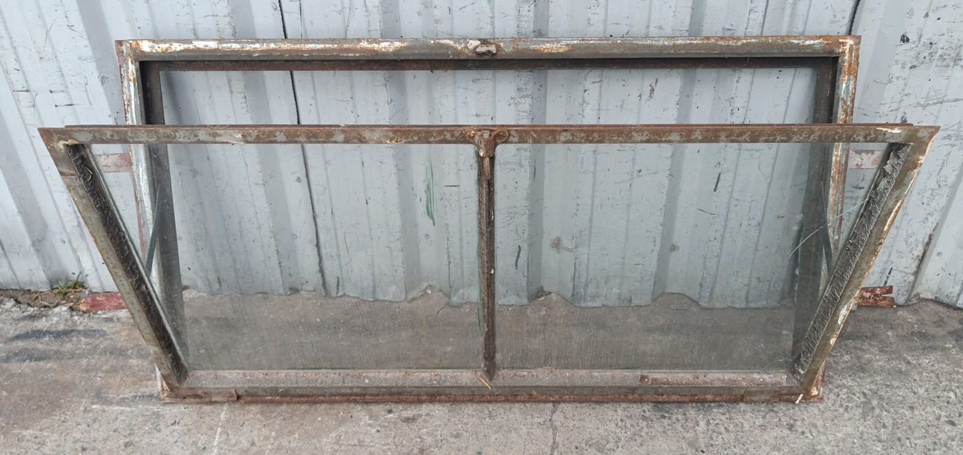 Seis antiguas ventanas tipo mamparas de hierro. Son a una hoja pivotante, con vidrio tipo partido y marco de hierro. Las aberturas no incluyen los vidrios ni las trabas. Hoja de 115x61cm. EL PRECIO ES POR UNIDAD.
