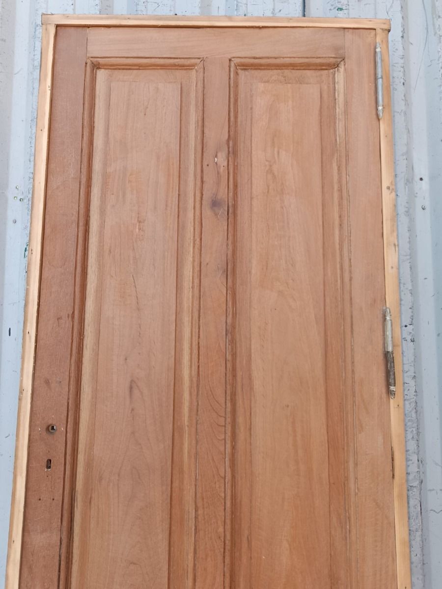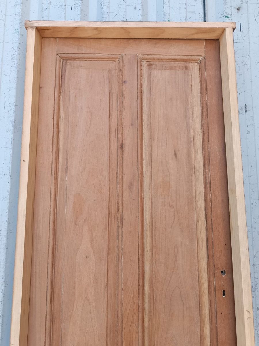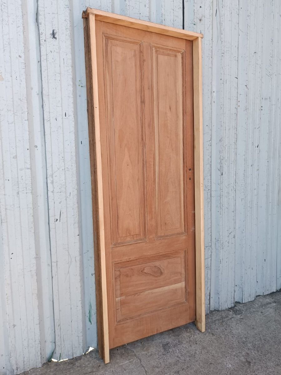 Dos antiguas puertas tablero de madera cedro al natural. Son a una hoja de abrir hacia la izquierda, con tableros doble replanados y marco de madera dura. La abertura no incluye cerradura, llave ni picaporte. Hojas de 72x200cm. EL PRECIO ES POR UNIDAD.