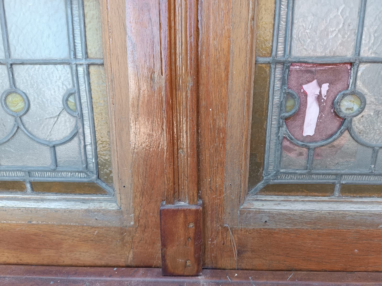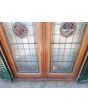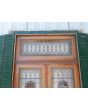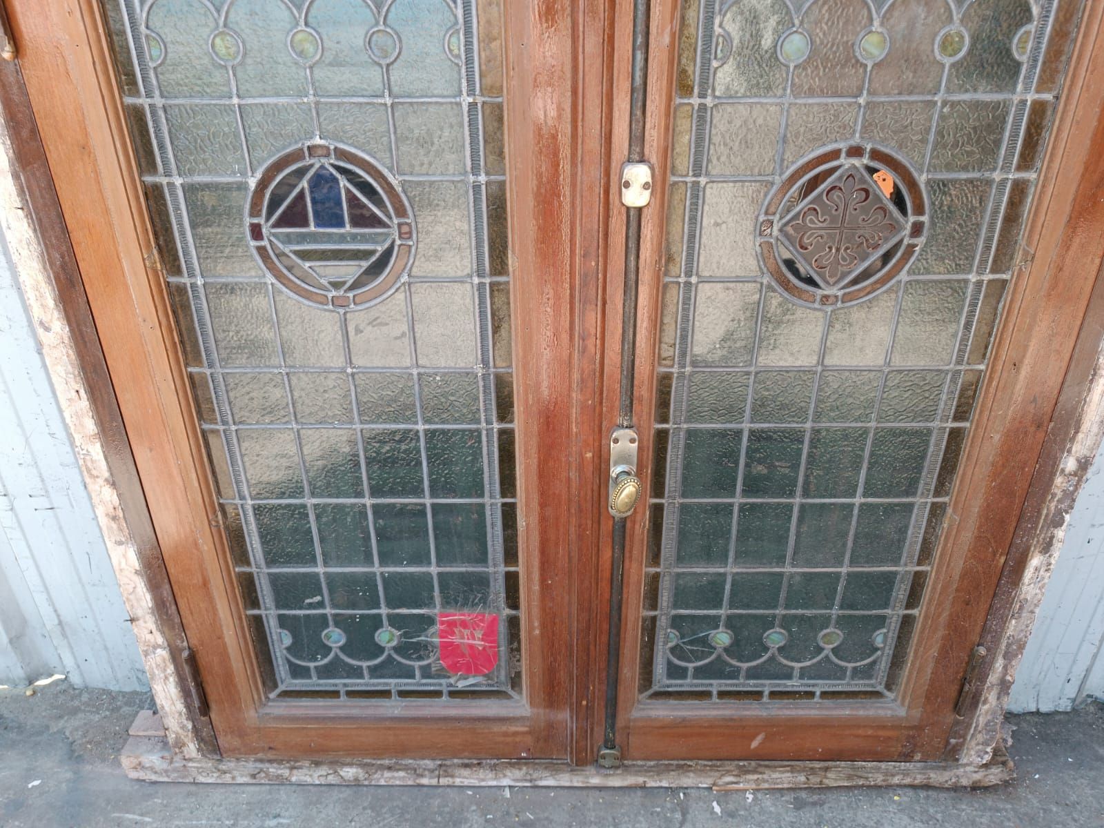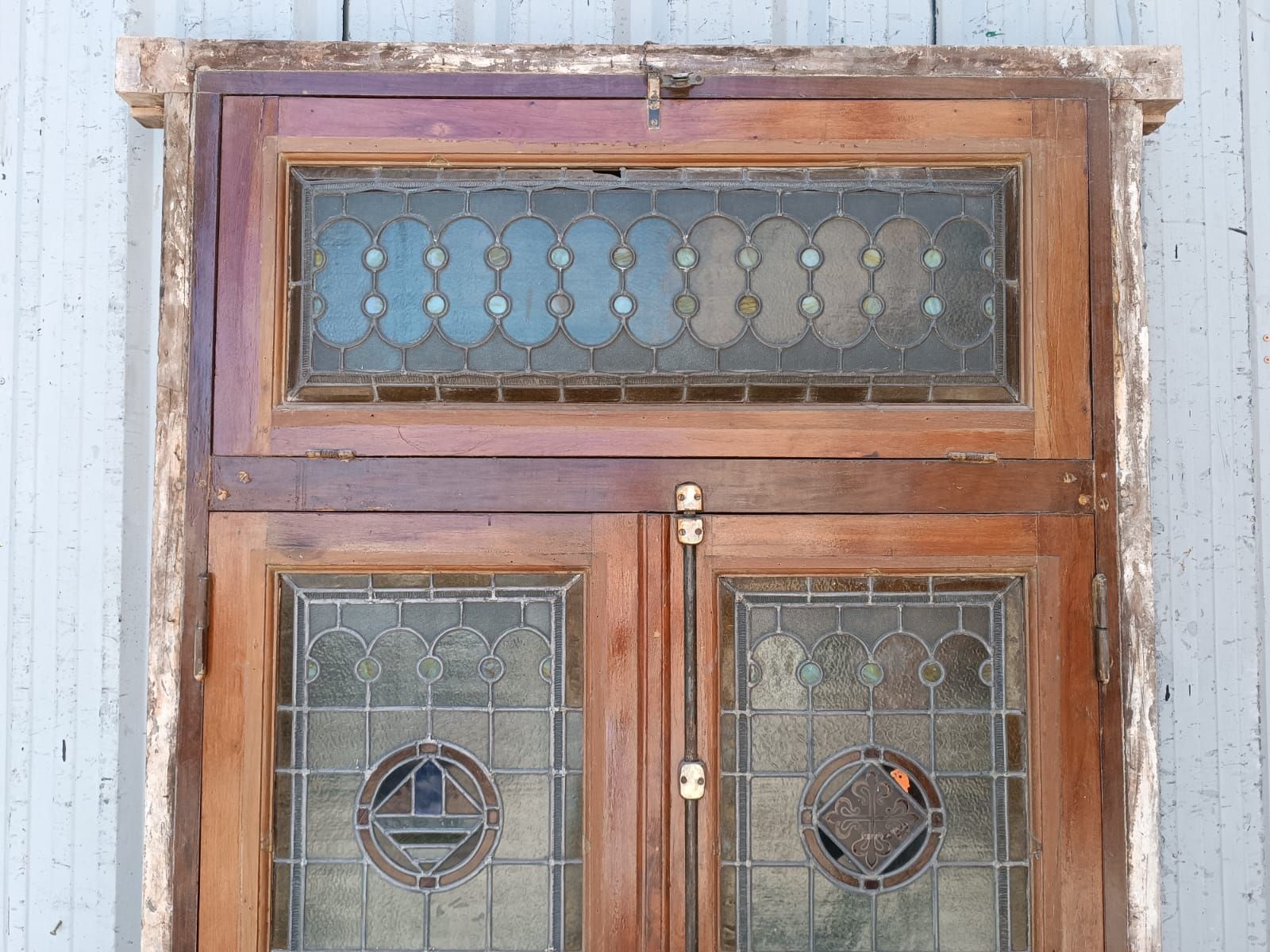 Dos antiguas ventanas de madera cedro al natural. Son a dos hojas de abrir, con vitraux, celosías de hierro, tapajunta, capitel, falleba y marco de madera dura. Una de las ventanas tiene algunos detalles en el vitraux que pueden observarse en las fotografías. Hojas de 60x133cm. EL PRECIO ES POR UNIDAD.