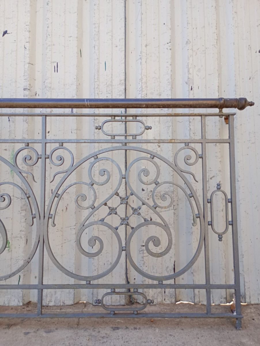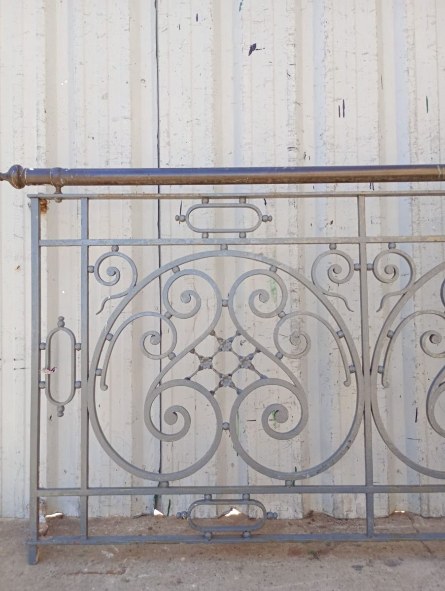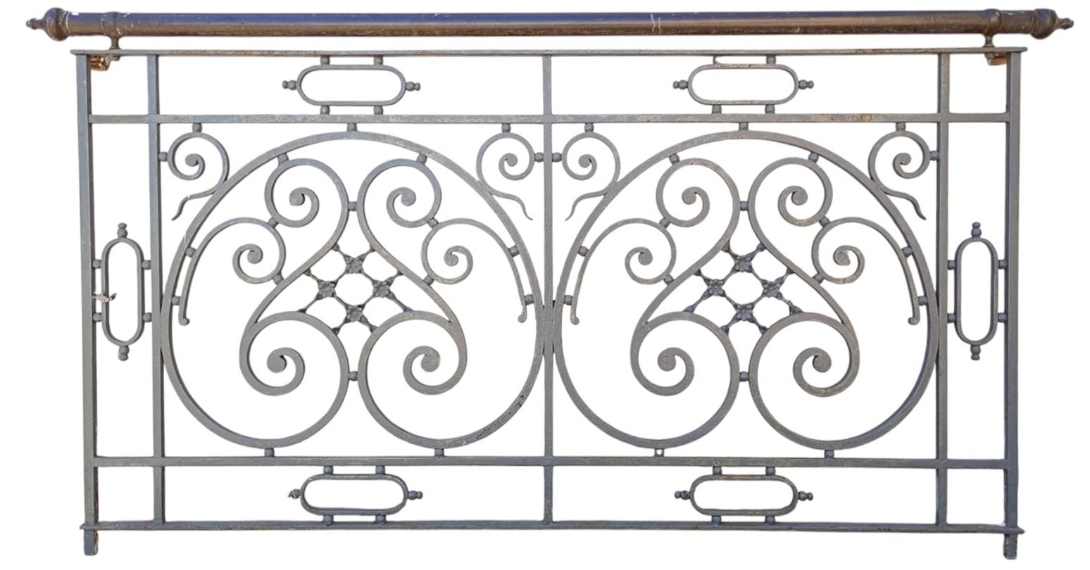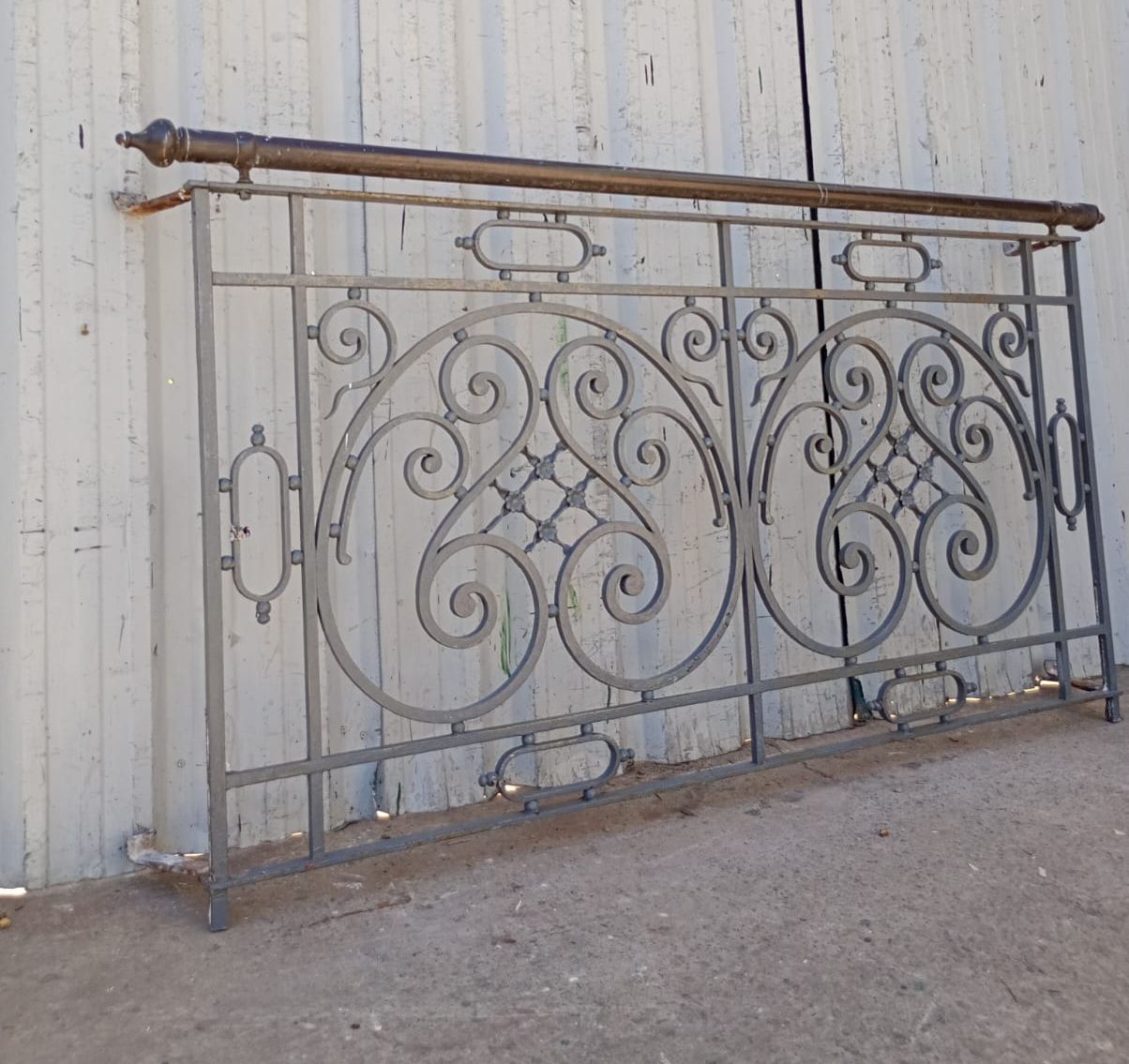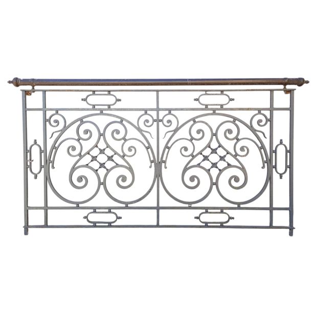 Antiguo balcón de hierro con baranda de bronce