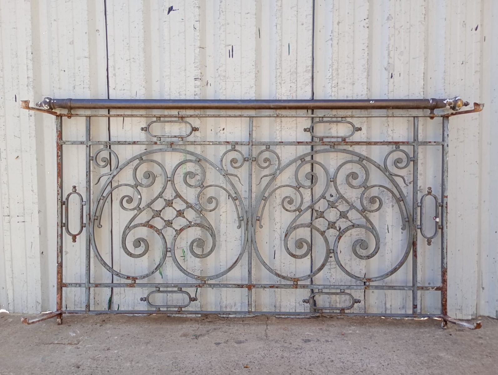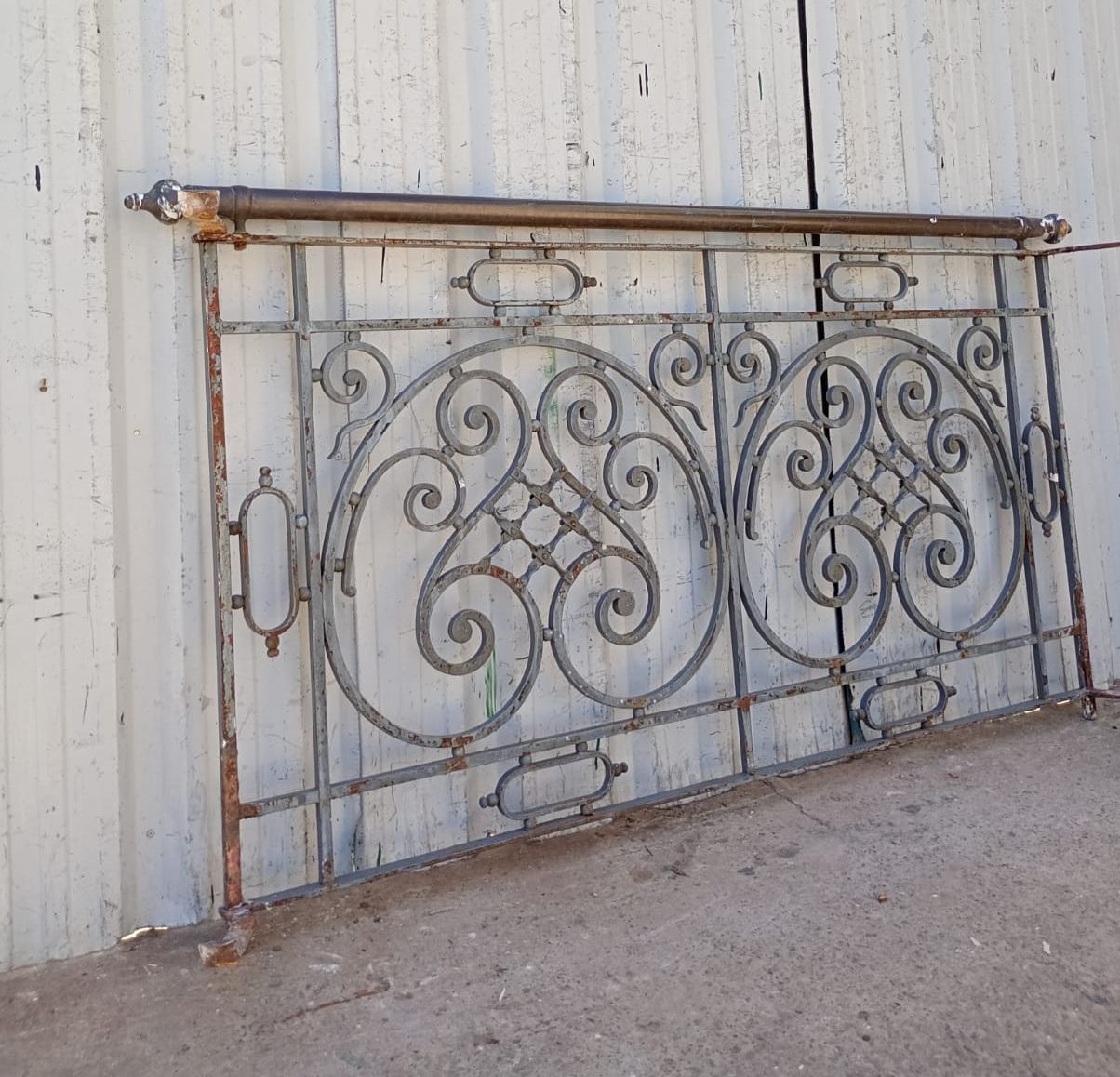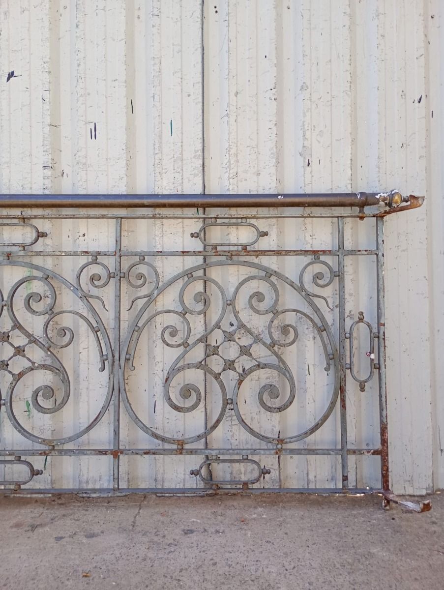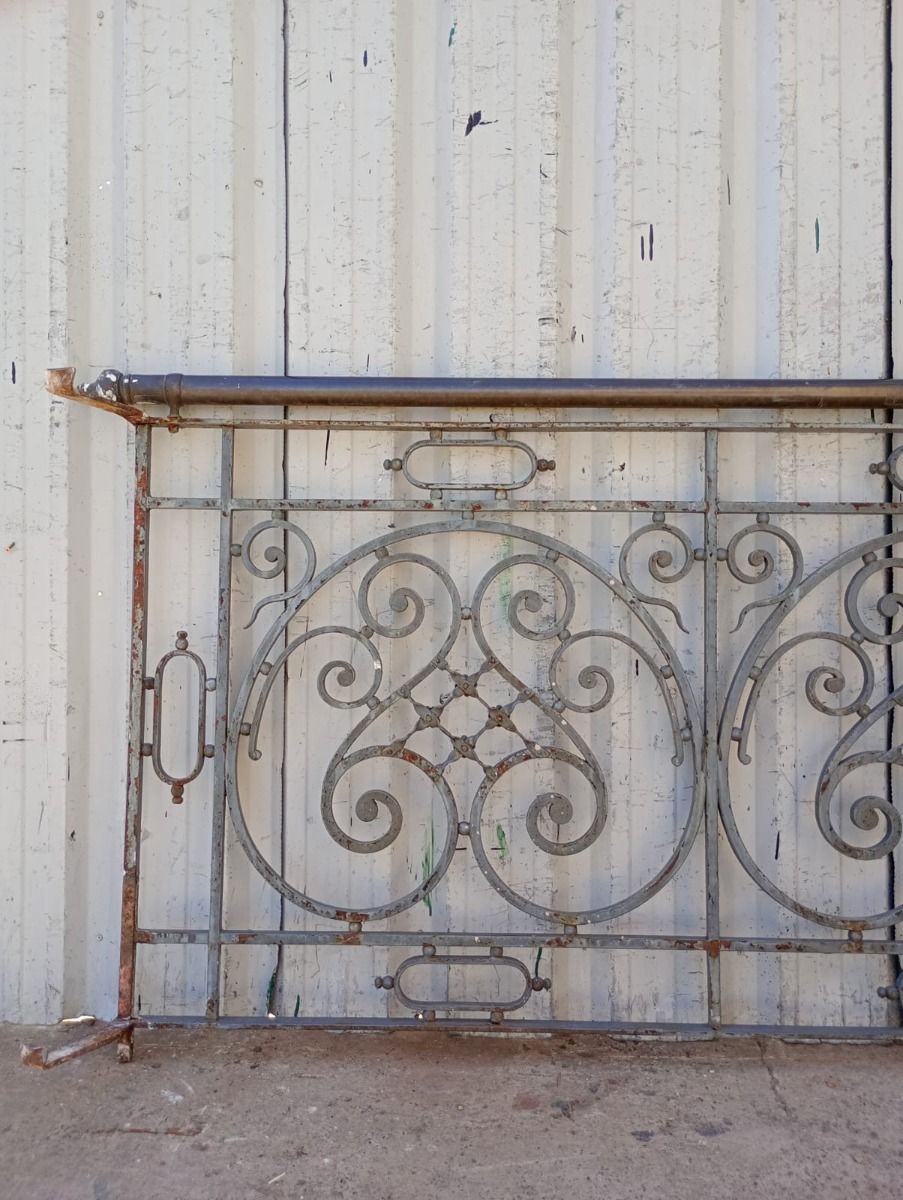 Antiguo balcón de hierro con baranda de bronce