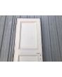 Puerta antigua ciega de cedro. Es de dos pulgadas de espesor y a una hoja de abrir hacia la derecha. Con tableros doble replanados moldurados y marco tipo cajón. La abertura no incluye cerradura ni picaporte. Hoja de 72x220cm.