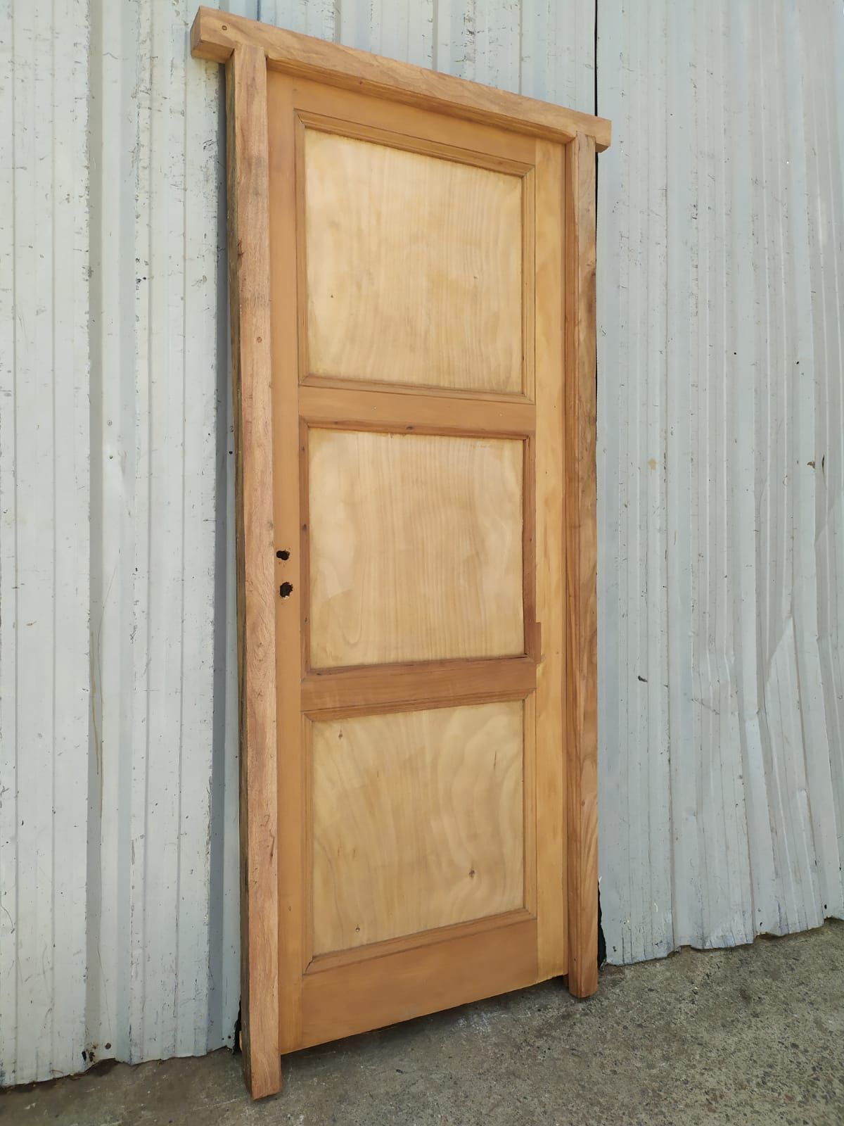 Puerta tablero de madera antigua cedro al natural. Es a una hoja de abrir hacia la derecha, con tableros y marco de madera dura. La abertura no incluye cerradura ni picaporte. Hoja de 80x211cm.