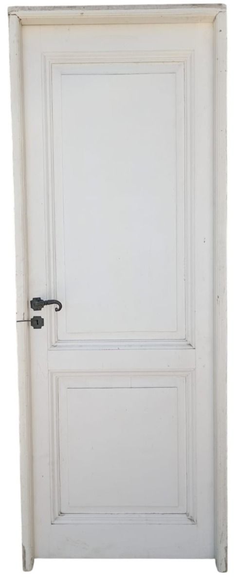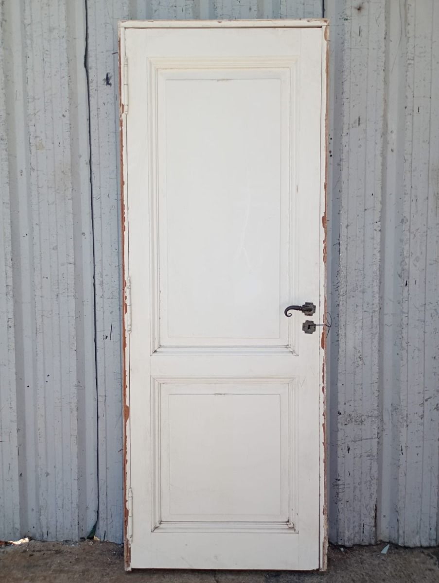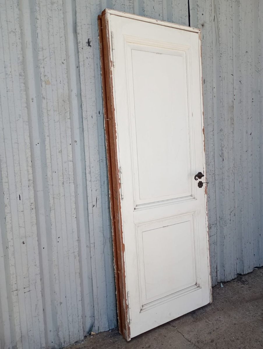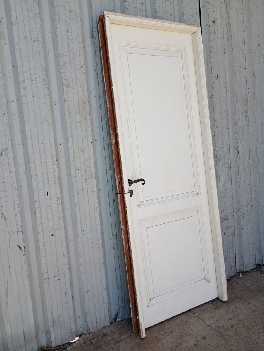 Ocho puertas tablero de madera antigua pino brasil pintadas de blanco. Son a una hoja de abrir (cinco son de apertura derecha y tres de apertura izquierda), con tableros doble replanados, picaportes de hierro forjado y marco de madera cedro. Las aberturas no incluyen cerradura ni llave. Hojas de 73x207cm. EL PRECIO ES POR UNIDAD.