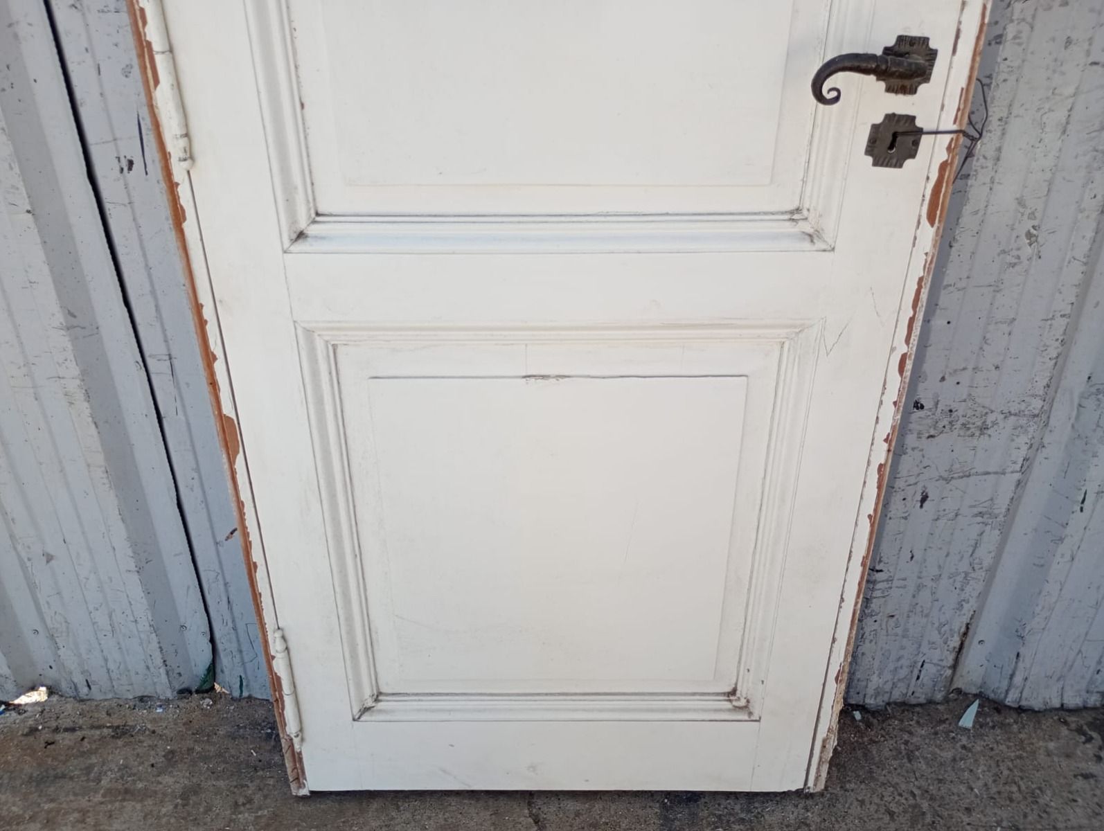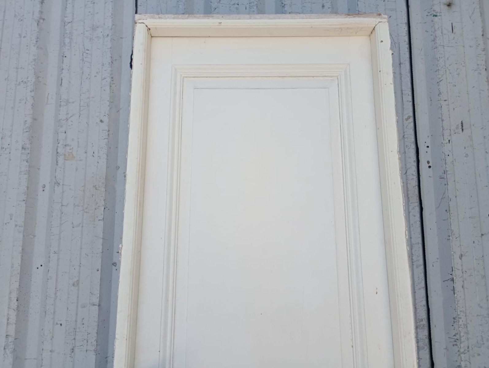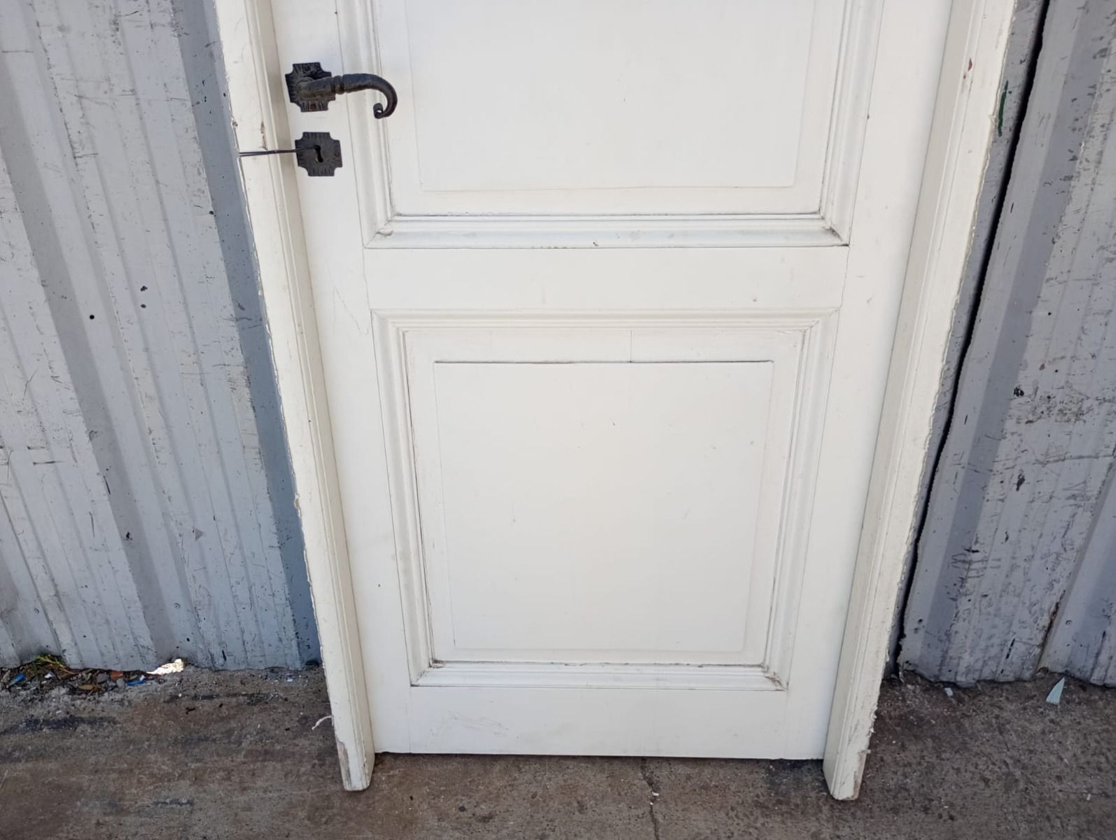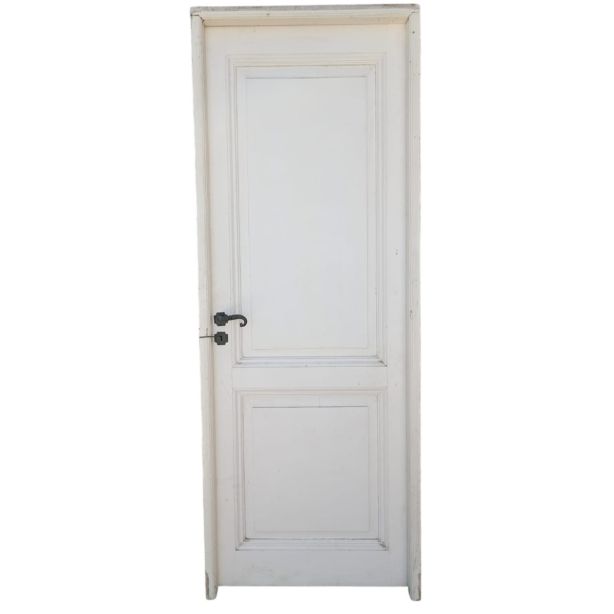 Ocho puertas tablero de madera antigua pino brasil pintadas de blanco. Son a una hoja de abrir (cinco son de apertura derecha y tres de apertura izquierda), con tableros doble replanados, picaportes de hierro forjado y marco de madera cedro. Las aberturas no incluyen cerradura ni llave. Hojas de 73x207cm. EL PRECIO ES POR UNIDAD.