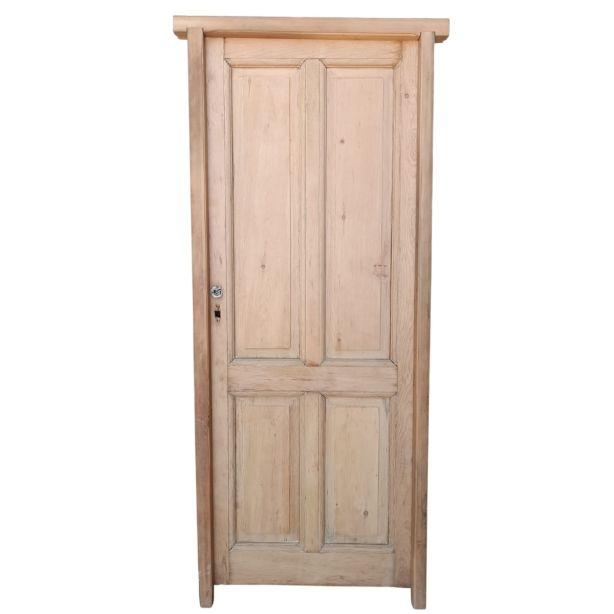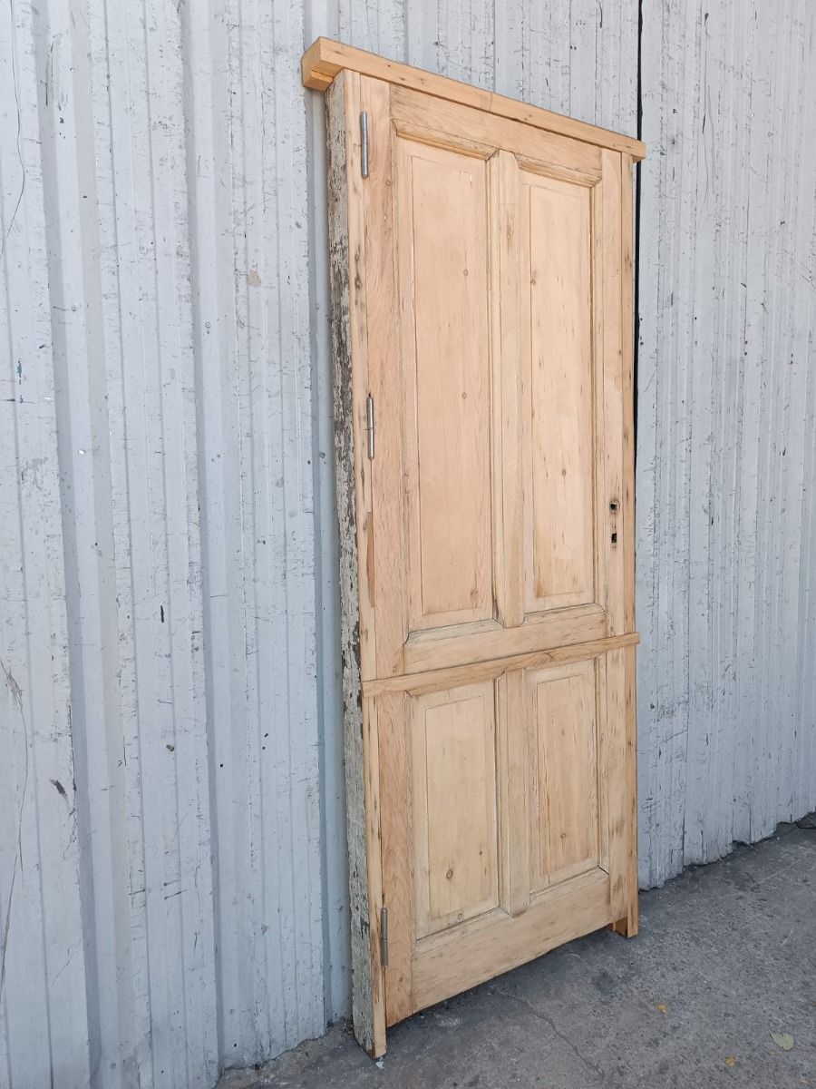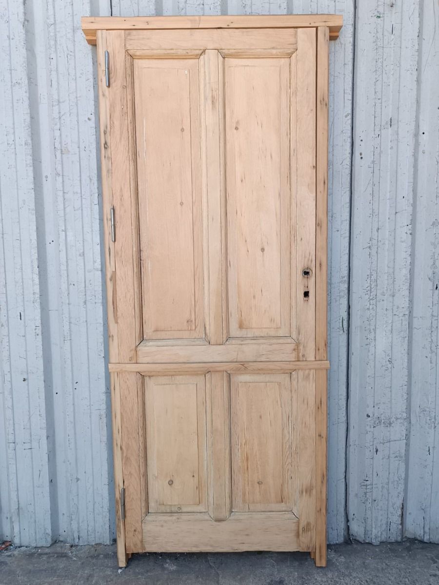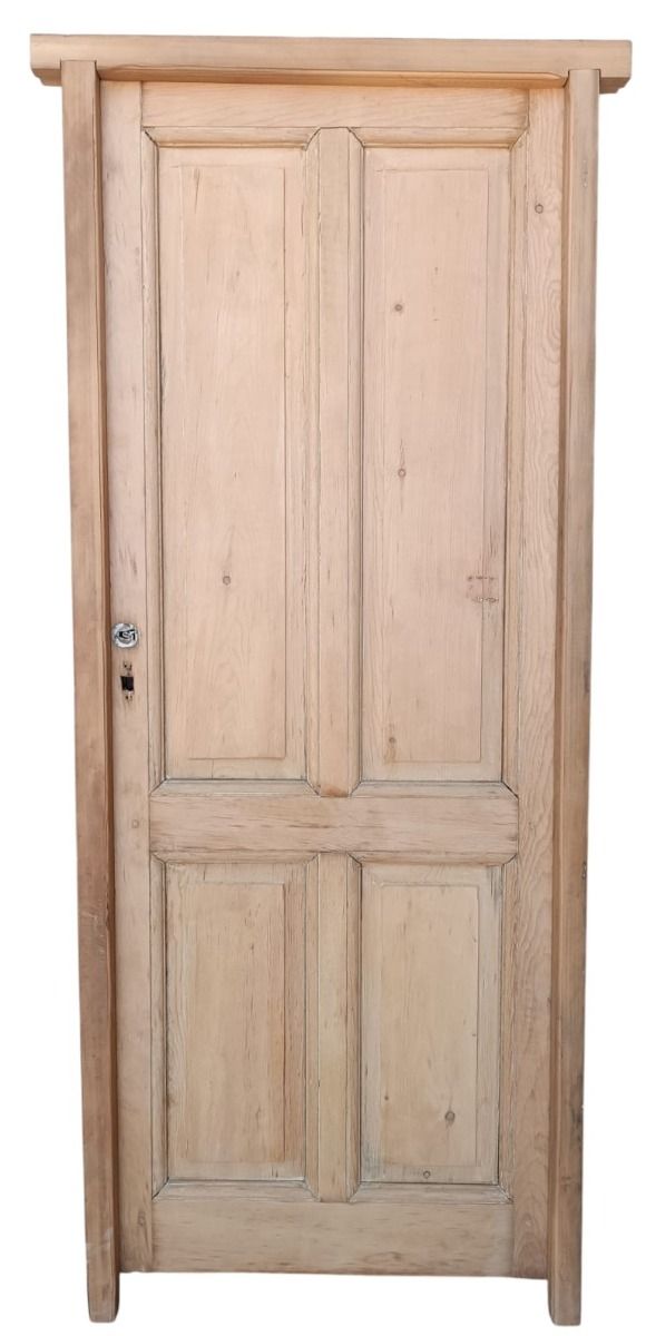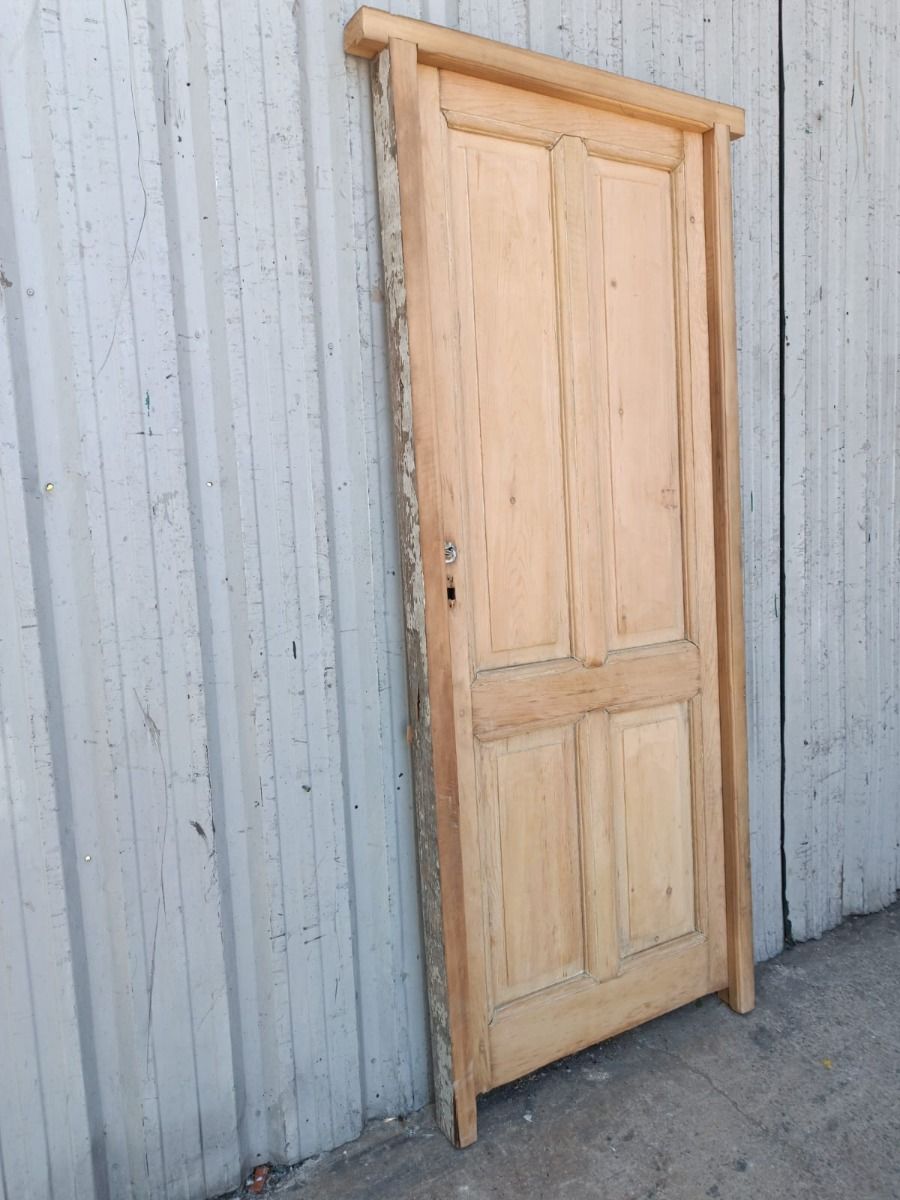 Dos antiguas puertas tablero de madera pino oregon al natural. Son a una hoja de abrir (una es de apertura derecha y otra es de apertura izquierda), con tableros doble replanados y marco de madera dura. La abertura no incluye la cerradura ni el picaporte. Hoja de 77x203cm. EL PRECIO ES POR UNIDAD.