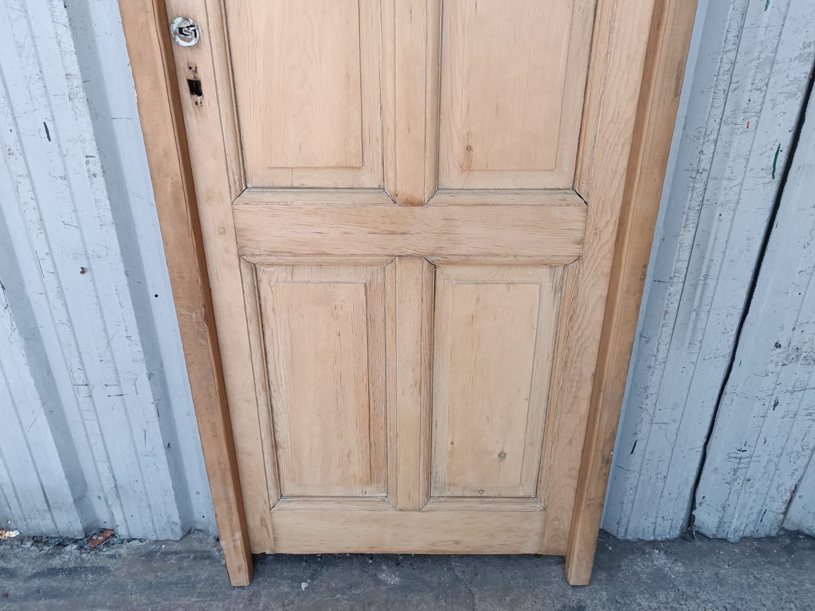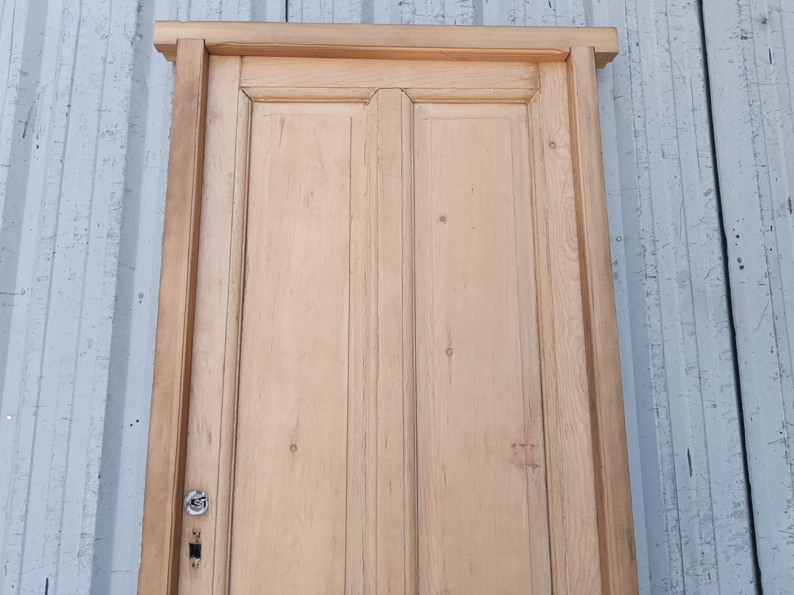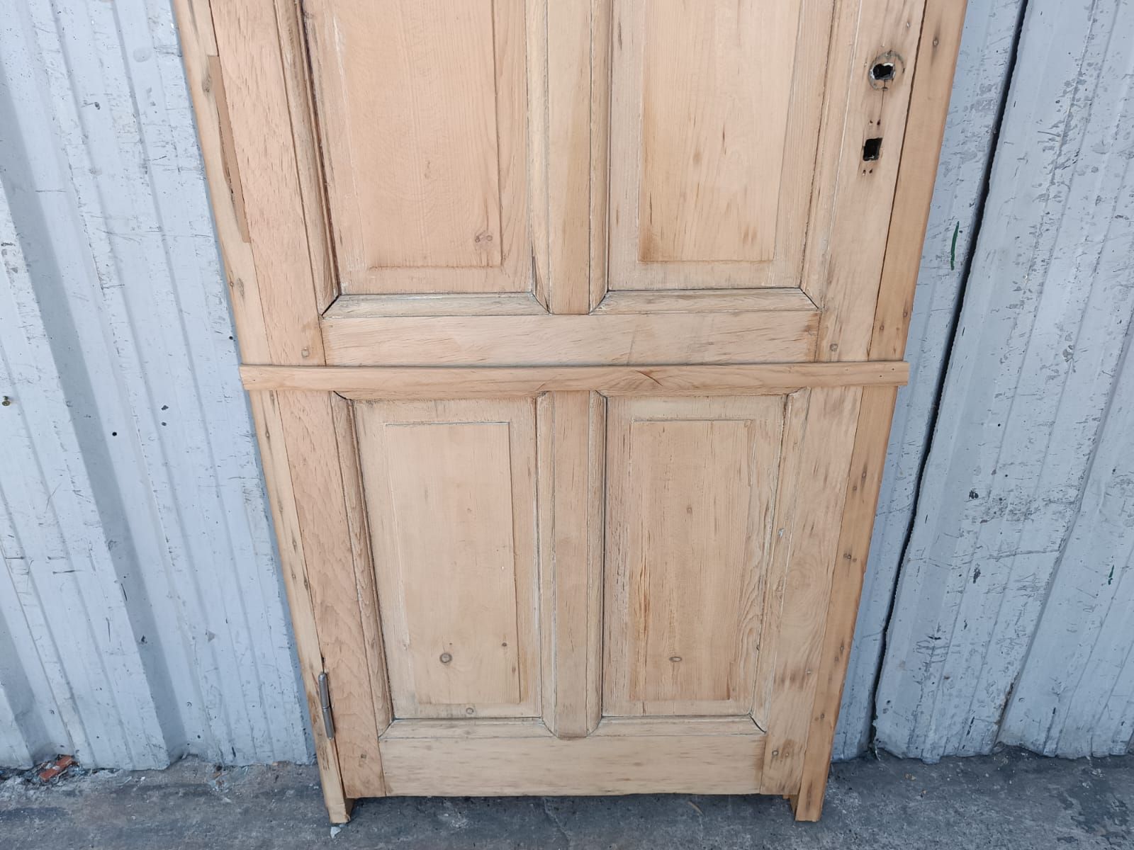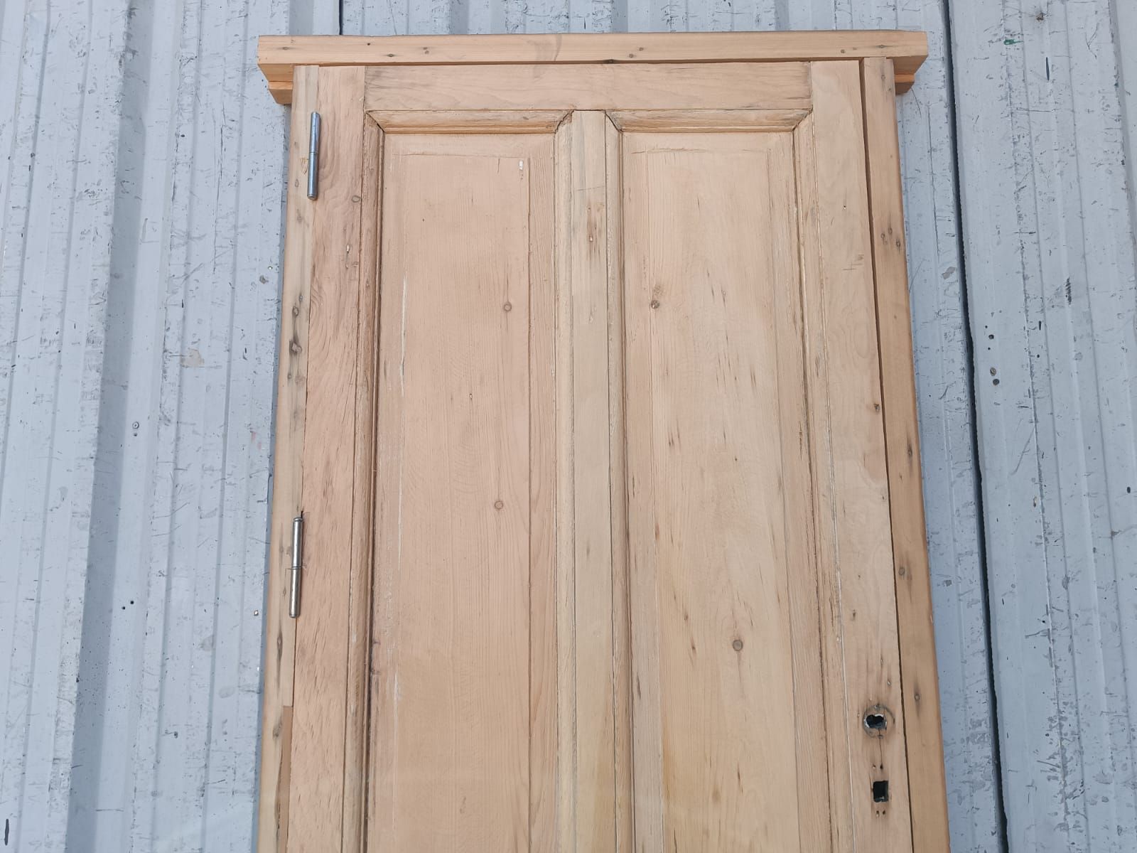 Dos antiguas puertas tablero de madera pino oregon al natural. Son a una hoja de abrir (una es de apertura derecha y otra es de apertura izquierda), con tableros doble replanados y marco de madera dura. La abertura no incluye la cerradura ni el picaporte. Hoja de 77x203cm. EL PRECIO ES POR UNIDAD.