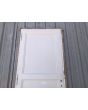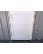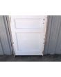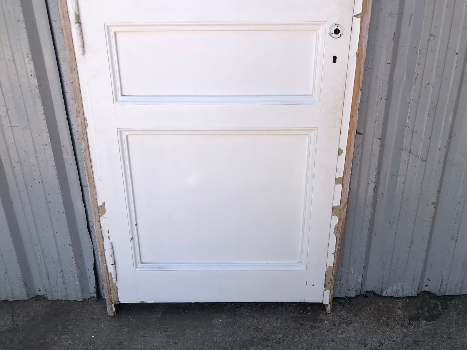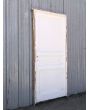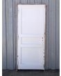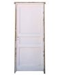 Puerta antigua de madera cedro pintadas de blanco. Es de dos pulgadas de espesor, a una hoja de abrir hacia la izquierda. Con tableros doble replanados y marco de madera dura. La abertura no incluye cerradura ni picaporte. Hoja de 88x220cm.
