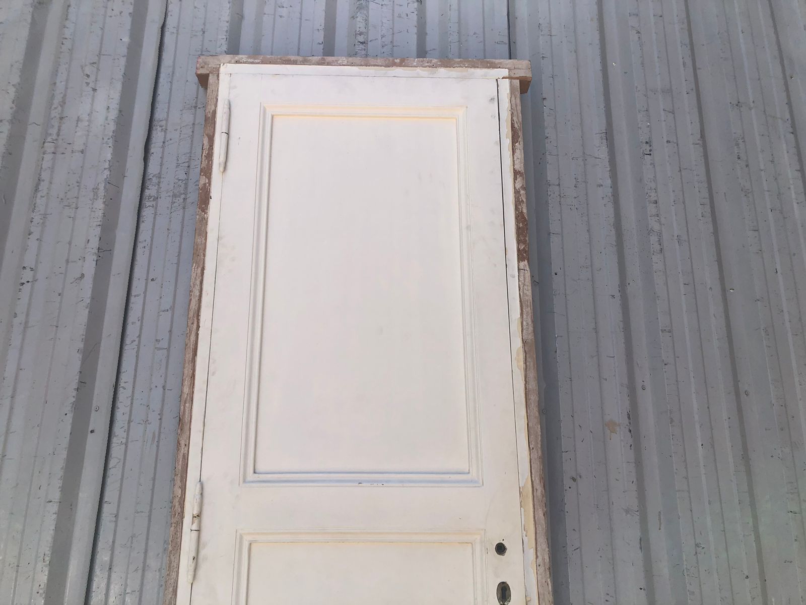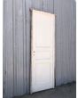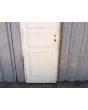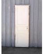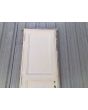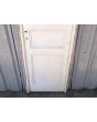 Puerta antigua de madera cedro pintadas de blanco. Es de dos pulgadas de espesor, a una hoja de abrir hacia la derecha. Con tableros doble replanados (tiene el tablero inferior rajado, que puede solucionarse con macilla) y marco de madera dura. La abertura no incluye cerradura ni picaporte. Hoja de 68x220cm.
